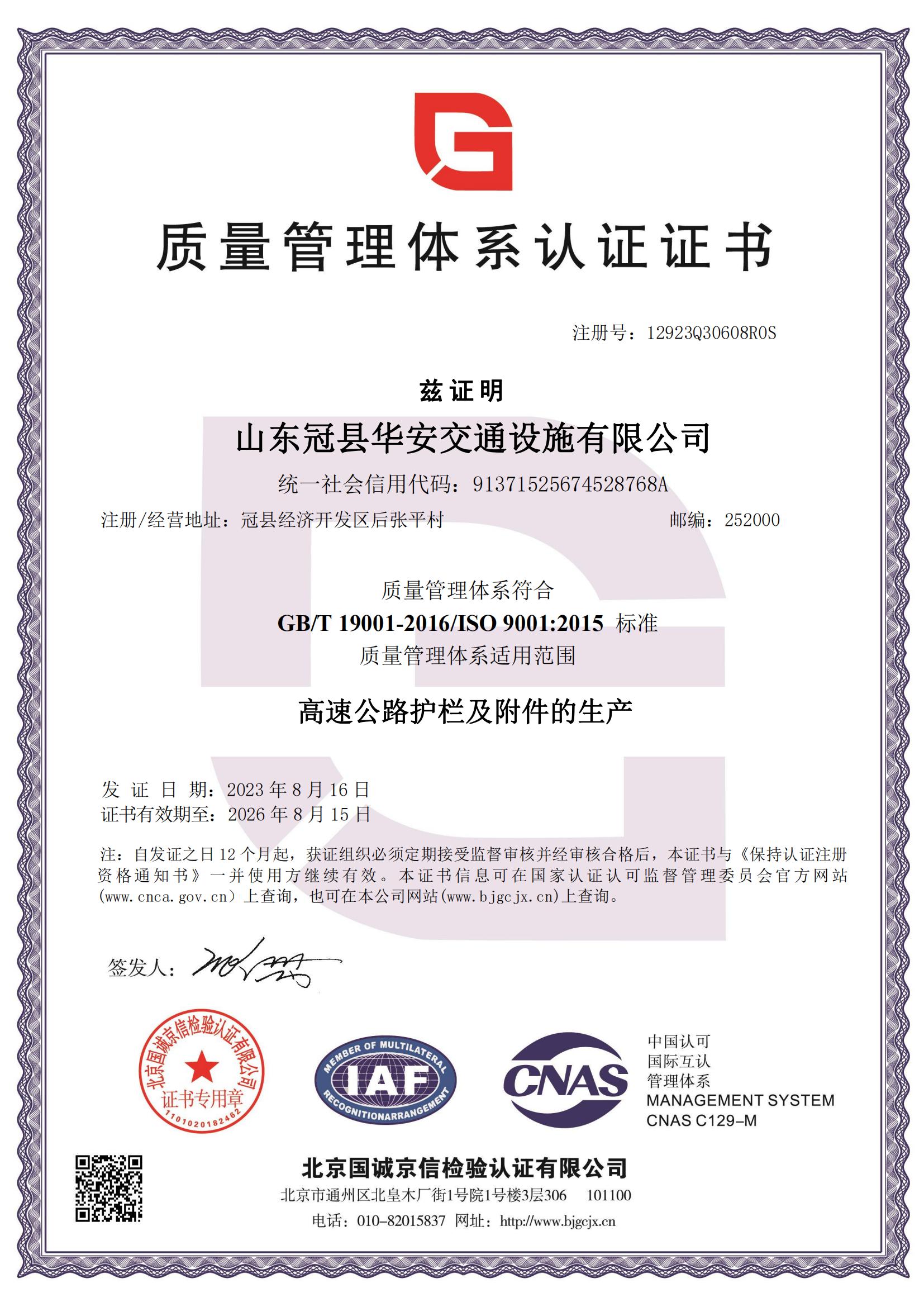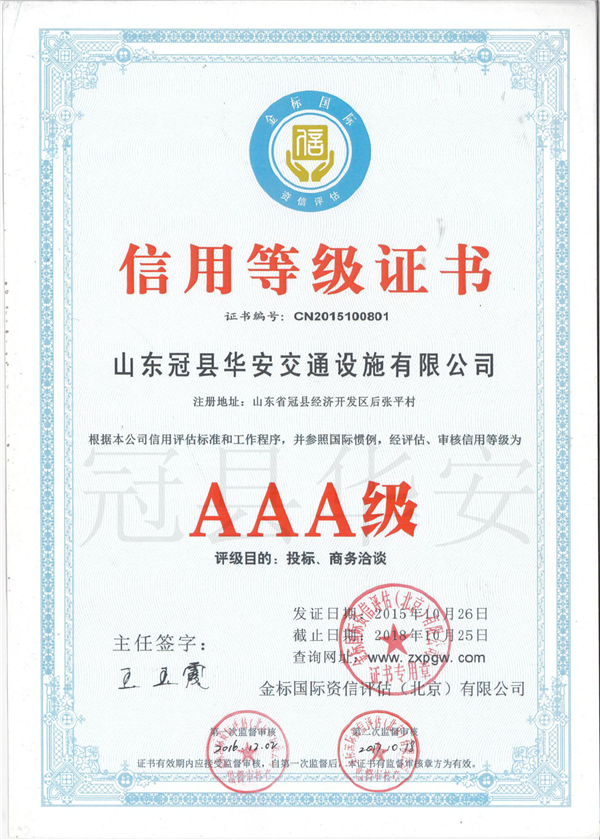 山東冠縣華安交通設施有限公司成立于2008年,位于素有“江北水城”之稱的聊城市護欄板生產基地-山東冠縣經濟開發區。     公司專業生產和銷售高品質波形護欄板、立柱、護欄板配件、交通標志牌、交通標志桿、防眩板、標線、等交通行業產品。近年來已迅速發展成為交通行業的重點企業之一。     2008年新建工廠并相繼投資建設了兩條成型生產線、兩條截管線、一條熱浸鍍鋅生產線,具備10萬噸的年綜合生產能力。公司以先進的生產工藝、可靠的信譽、優良的產品、完善的檢測手段、盡職盡責的售后服務、向社會各界提供優質產品。      公司產品銷